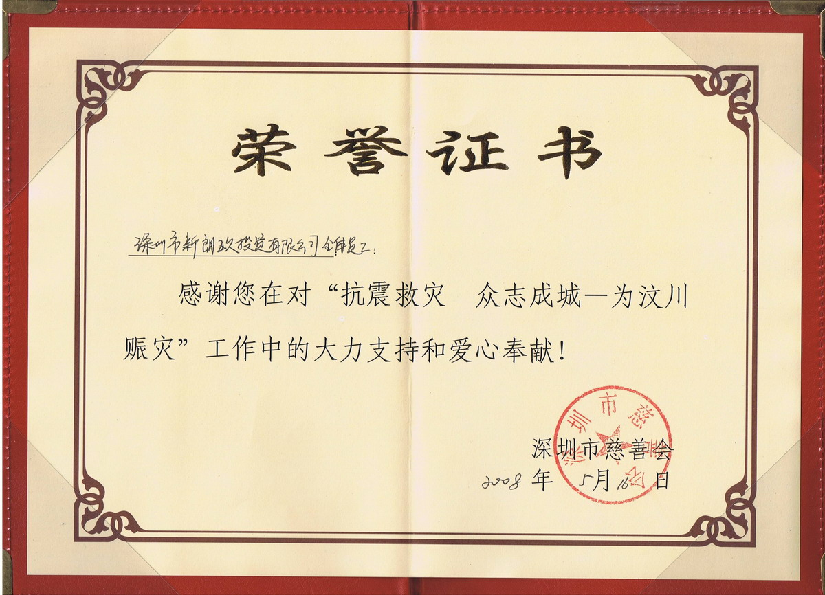 為幫助災區人民戰勝災害,渡過難關,5月15日,集團發起了“你把我的心思牽”的緊急募捐倡議,廣大員工積極響應,踴躍捐款,共募捐了善款53000多元交給了深圳市慈善會和湖北省紅十字會。