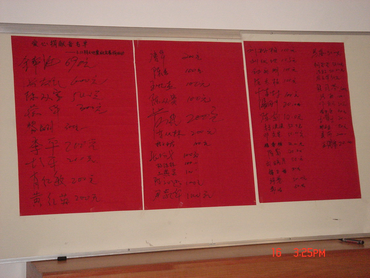5月12日四川汶川地區發生了7.8級地震,災情觸目驚心,現場慘不忍睹,這一突如其來的災難給災區同胞造成了異常巨大的創傷和痛苦,許多同胞失去了親人,失去了家園! 為幫助災區人民渡過難關,我集團從5月16日起分別在深圳(集團總部)、武漢(綠雪醫藥)和黃石(朗歐藥業)三個點開展了募捐活動。 廣大員工積極響應,踴躍捐款,深圳新朗歐投資有限公司、深圳市綠雪網絡科技有限公司、武漢綠雪醫藥發展有限公司、朗歐藥業(湖北)藥業有限公司145名員工共捐款人民幣53665元。