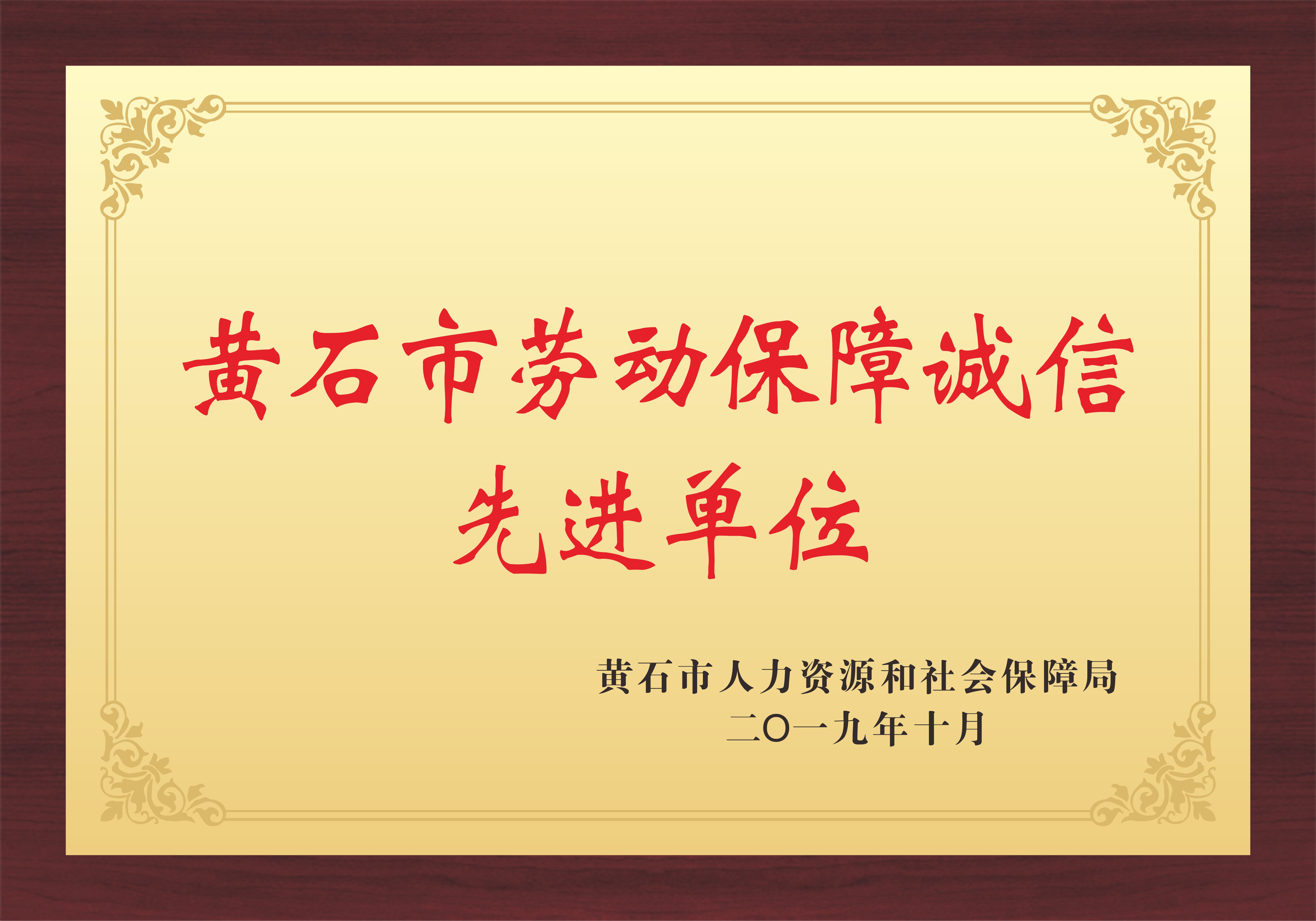 黃石市勞動保障誠信先進單位