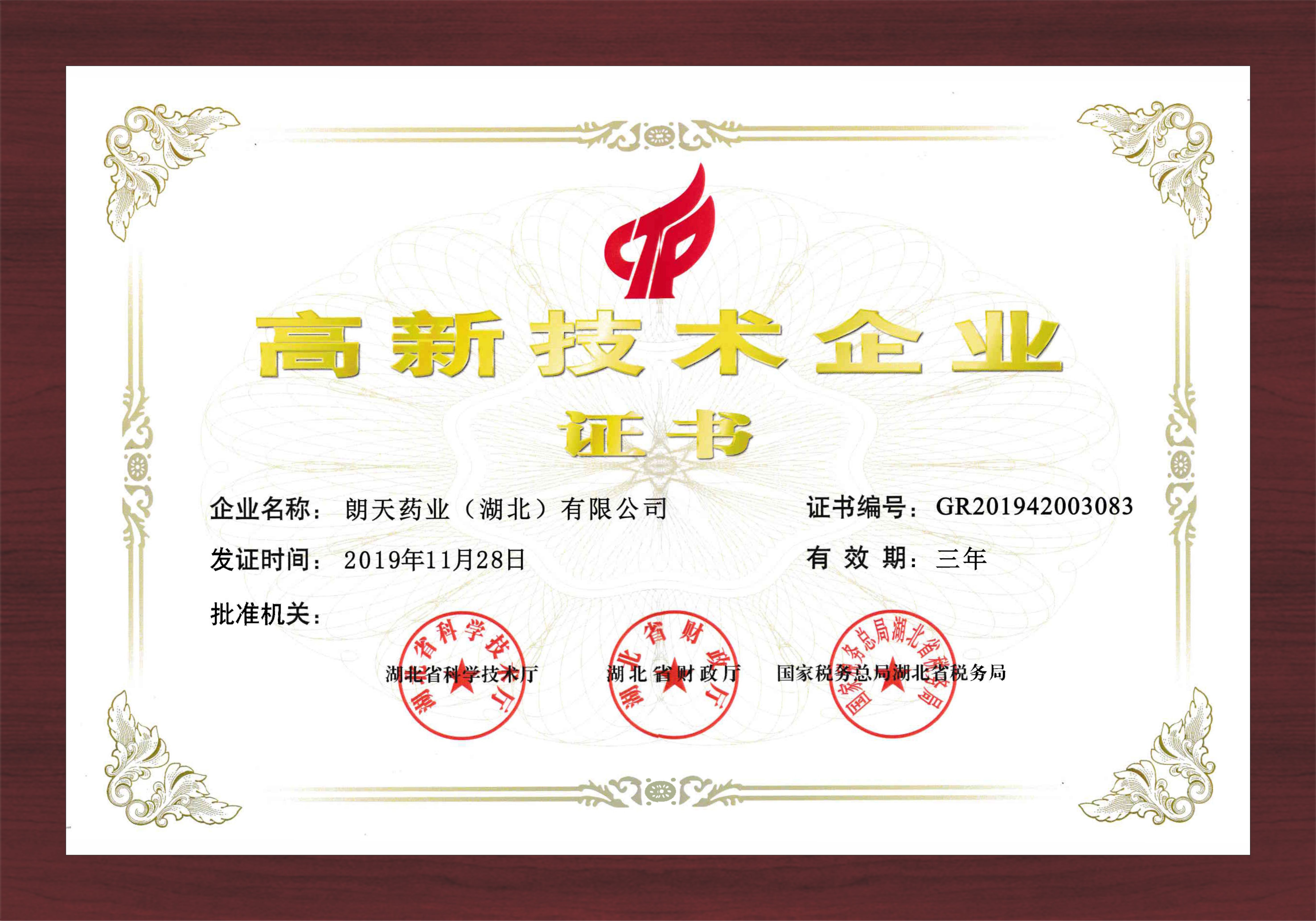 高新技術企業證書
