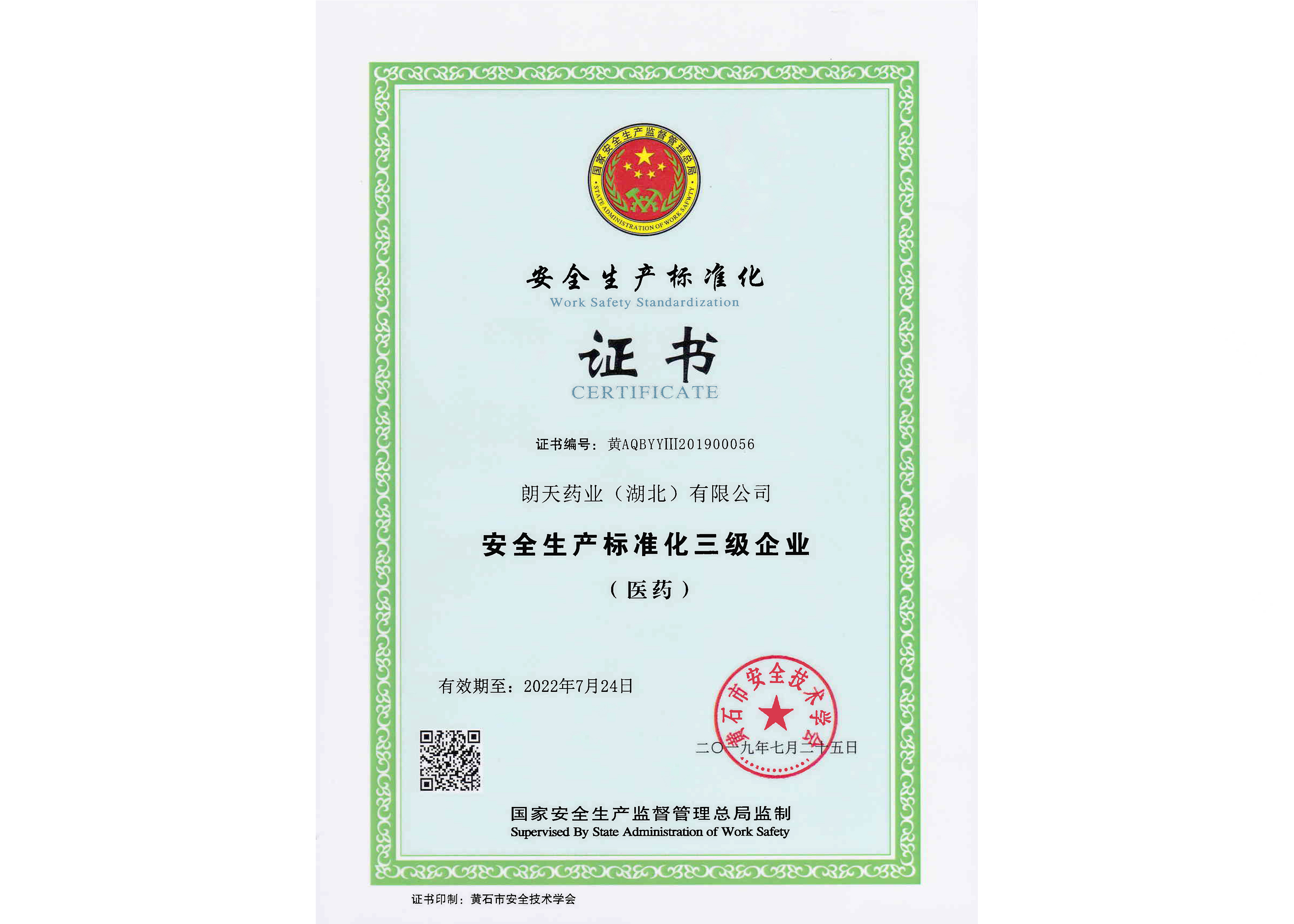 黃石市安全生產標準化三級企業